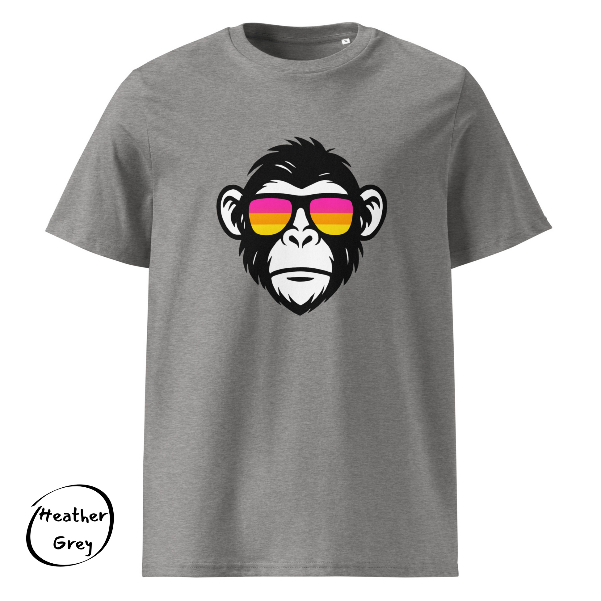 Make a bold statement with this eye-catching monkey design featuring retro sunglasses in a pop of vibrant color. Printed on a premium organic men's tee, this shirt blends comfort, personality, and sustainability in one. Whether you're heading out or just chilling, this shirt is guaranteed to bring the vibes.