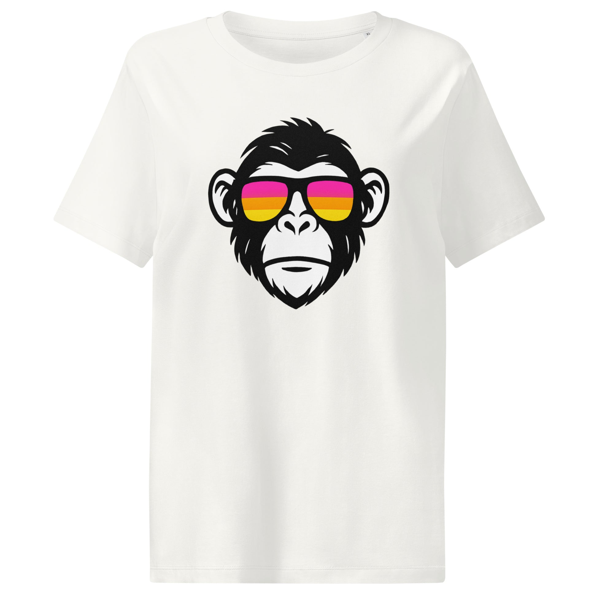 Bring the bold with this cheeky monkey rocking retro shades in sunset tones. This fun and flattering graphic tee is made from 100% organic cotton for a soft, premium feel—perfect for everyday wear with a little wild personality.